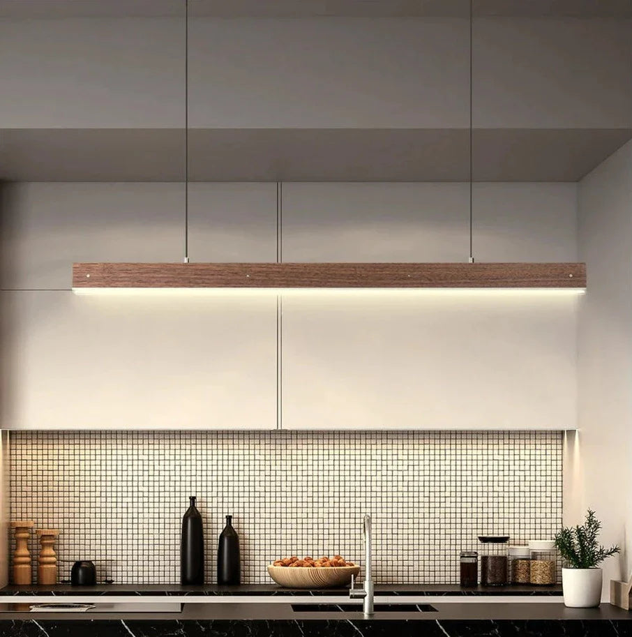 Lång pendellampa i trä